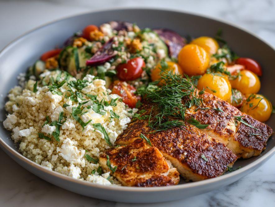 This plan focuses on high-protein meals seasoned with harissa, garlic, and herbs while keeping carbs under 90 g/day. It’s perfect for those who want to build lean muscle while maintaining a low-carb lifestyle.